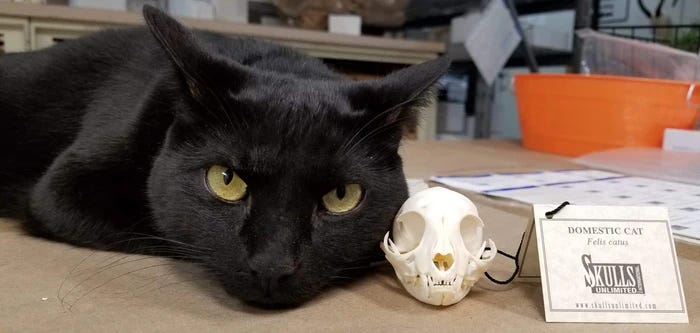 It took a while, but I’ve come around on cats. And something I’ve always loved is clever wordplay. The SKELETONS: Museum of Osteology in Oklahoma pairs both of those things in a delightful way.